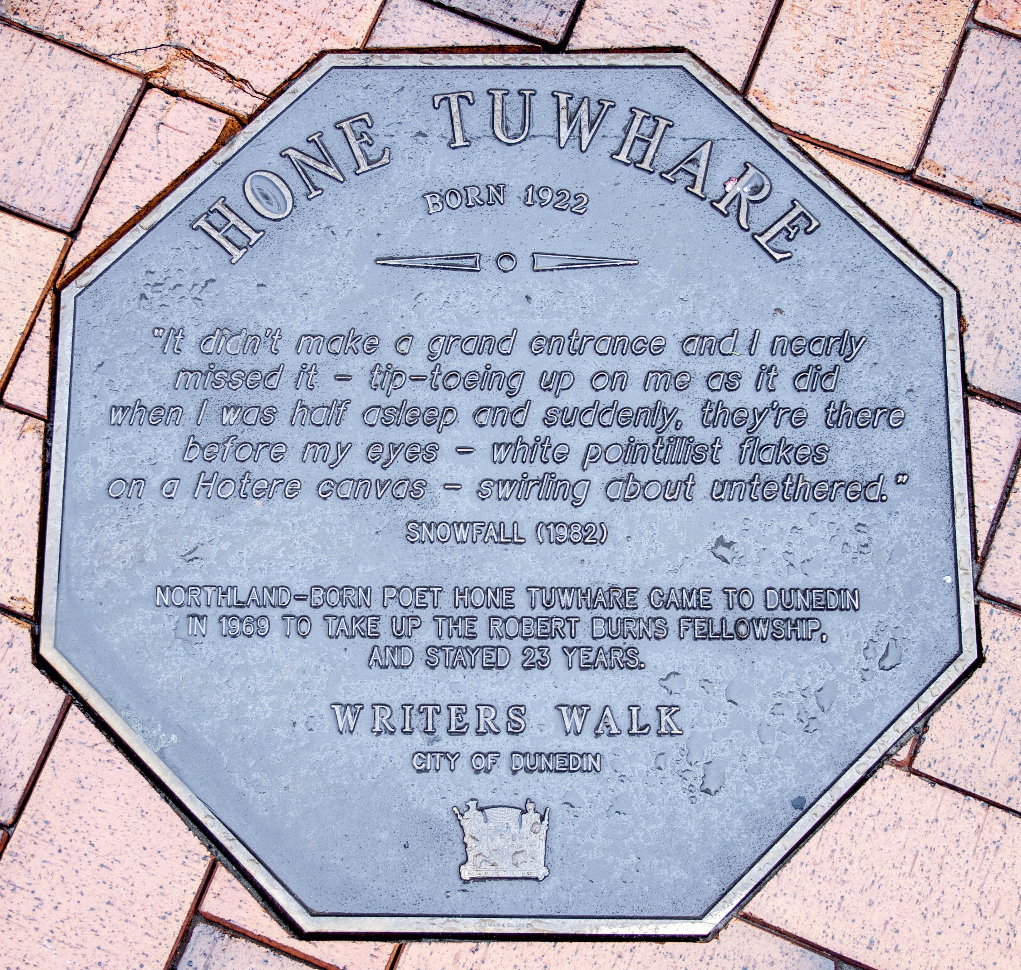 Title: Hone Tuwhare memorial plaque in Dunedin