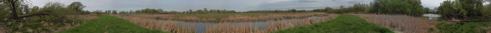 Description: Panoramic photograph of Horicon Marsh in Spring of 2015. This is the largest freshwater cattail marsh in the United States. This photograph was taken just a little ways into the wildlife refuge at coordinates 43.506340, -88.602562.