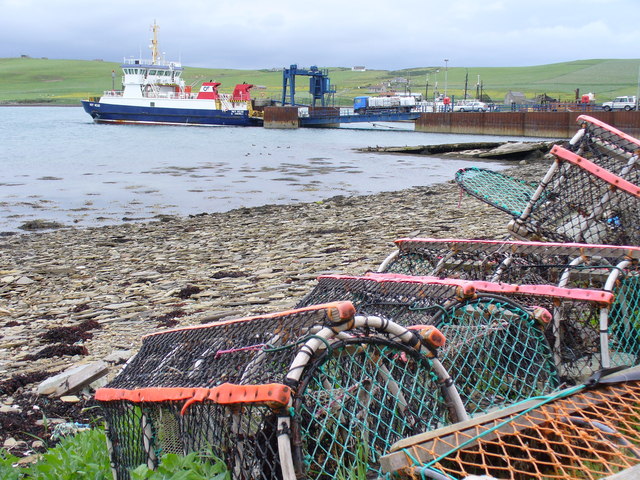 Description: Bay of Houton, Mainland, Orkney. The bay is sheltered by the Holm of Houton. The RO / RO ferry, MV Hoy Head, runs to Flotta and Hoy (Lyness).