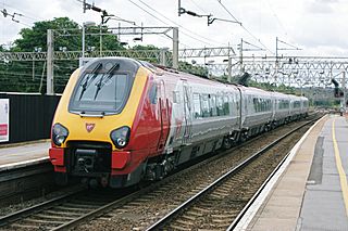 Description: Bombardier (Wakefield & Brugge) Class 221 "Super Voyager" 5-car dmu No.221 108 "Sir Ernest Shackleton" of Virgin West Coast leaving Watford Jct. on an Euston - Llandudno, 07/08.