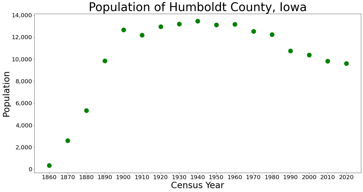 Description: The population of Humboldt County, Iowa from census data