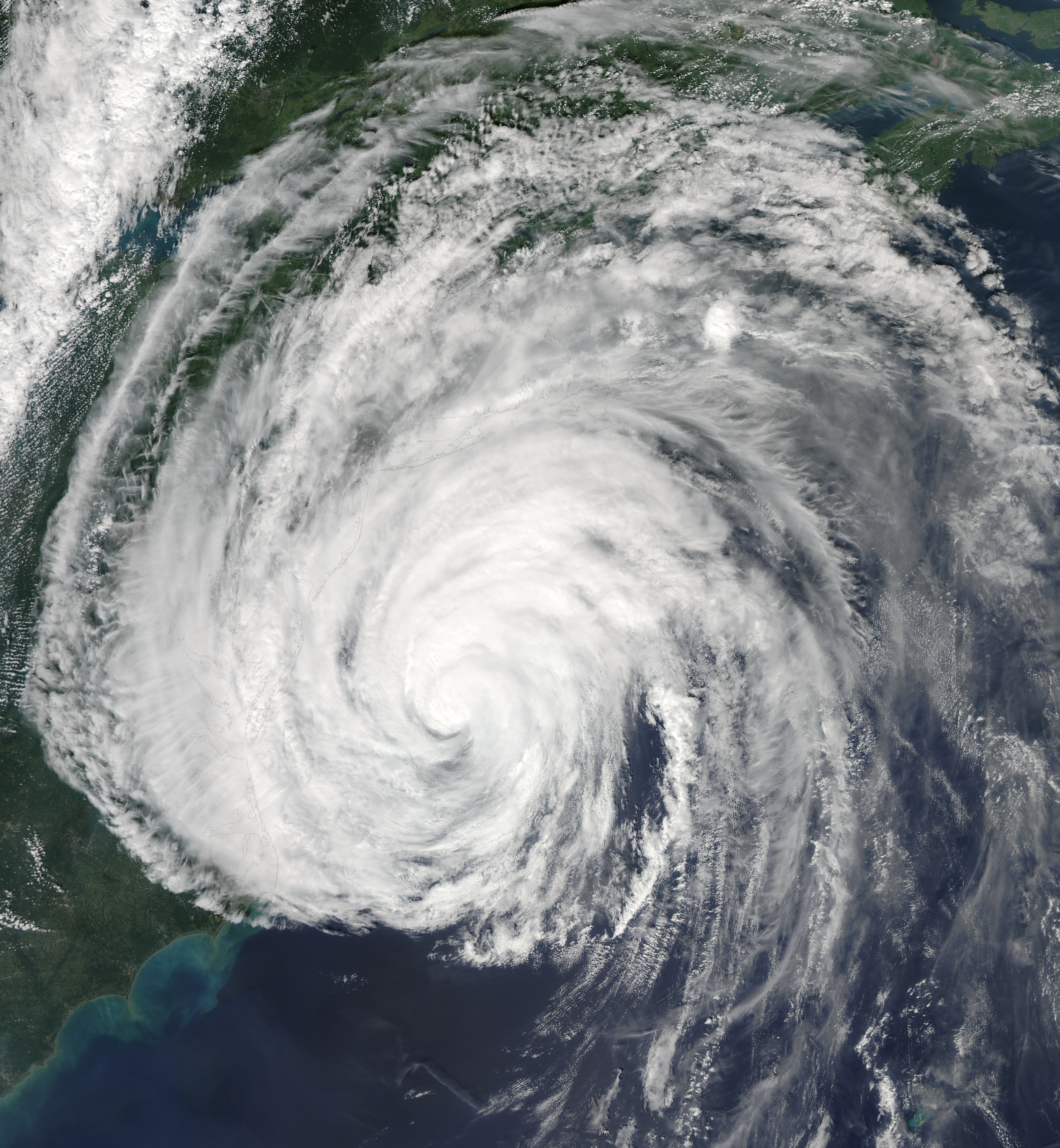 Description: Hurricane Earl as it further weakened into a category 2 storm, and brushed by Cape Hatteras. Large flooding and hurricane force winds were expected, but Earl was not as severe, bringing only moderate flooding and tropical storm force winds. The storm then weakened to a category 1 storm with winds of 80 mph (130 km/h). In the Mid-Atlantic states, Delaware, Maryland, Virginia, and New Jersey, experienced minimal to moderate effects of Earl. Along the coastline, tropical storm winds and large waves were felt throughout, with outer rainbands also battering the areas. The Delmarva Peninsula escaped the brunt of the storm, only dealing with some of the outer rainbands and gale force winds. Off the coast of New Jersey two people were killed after being swept out to sea by rip currents. The bodies of both victims were found after they washed onshore days after Earl's passage.