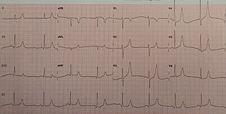 Description: An ECG of a person with a potassium of 5.7 showing large T waves
