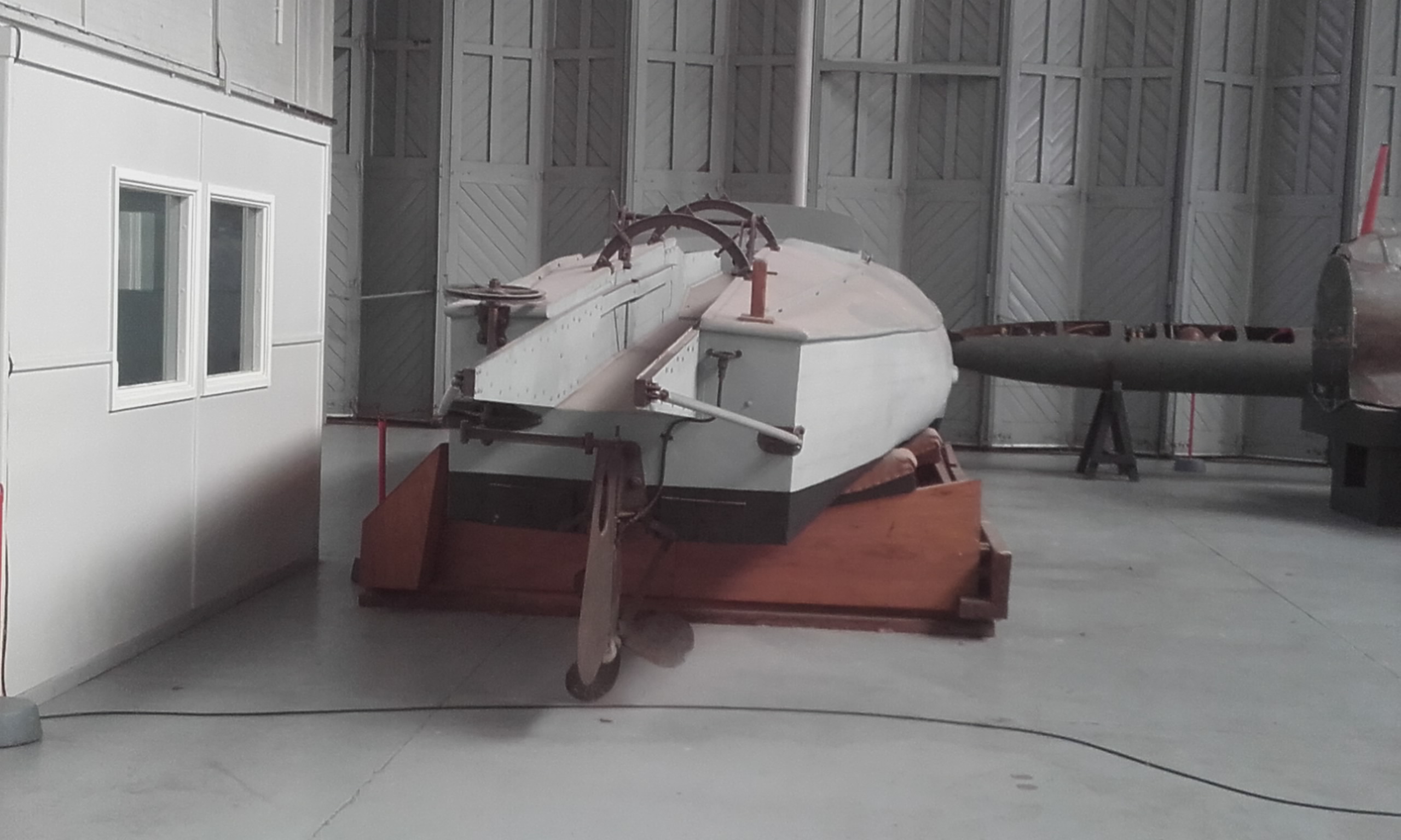 Description: HM Coastal Motor Boat 4 (1916) on display at the Imperial War Museum, Duxford, in October 2017. It was the torpedo boat used by Lieutenant Augustus Agar, when he earned a Victoria Cross for carrying out a raid on Soviet warships in Kronstadt in 1919.