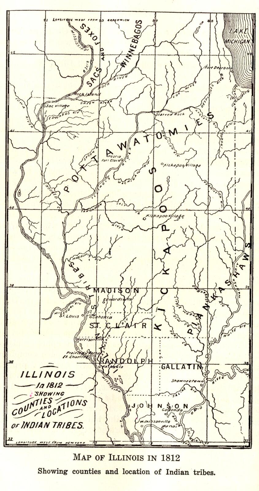 Description: Map of Illinois Territory during War of 1812 from book, History of Illinois, vol. I