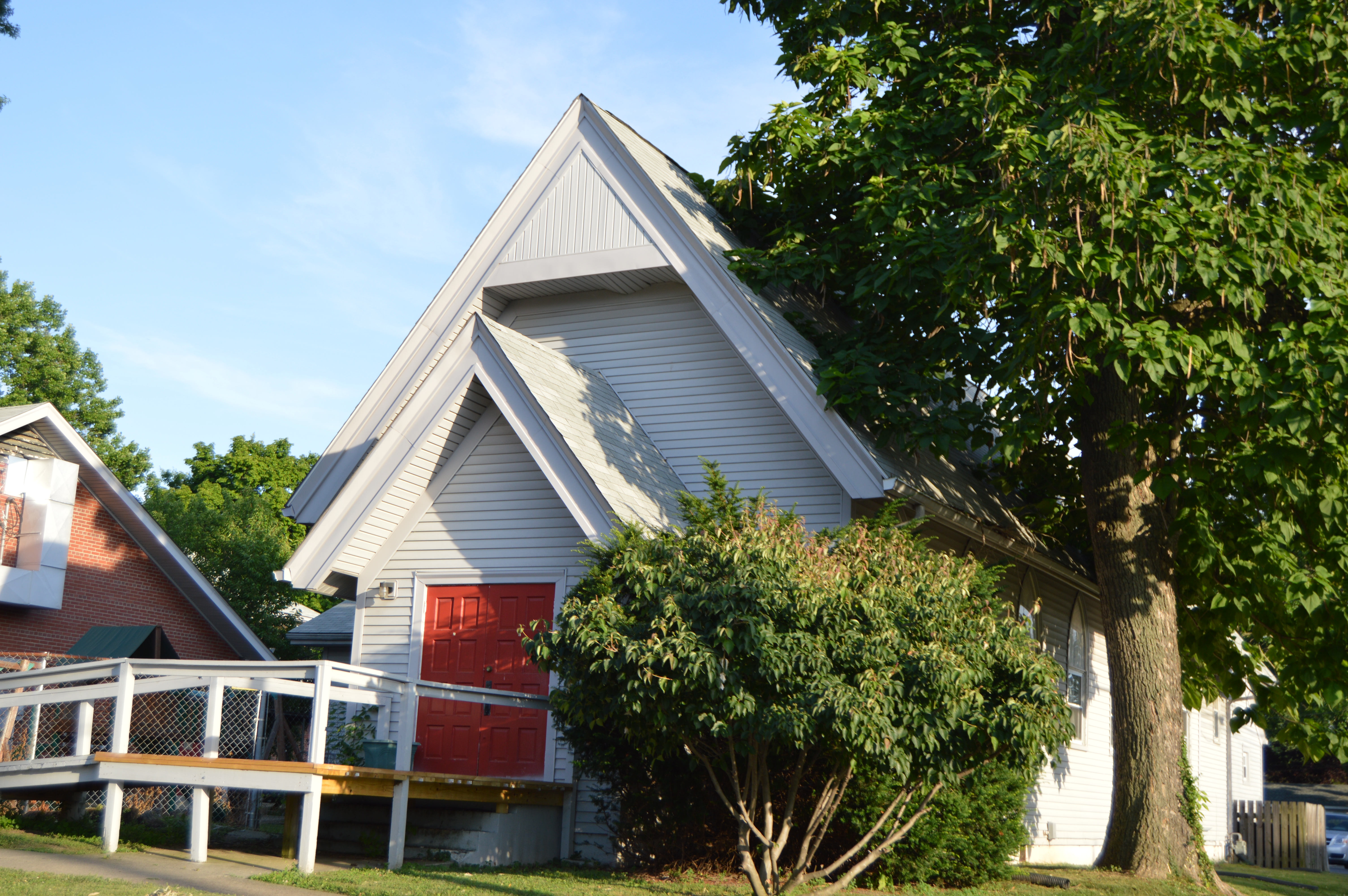 Description: Front and western side of Immanuel Chapel Protestant Episcopal Church), located at 410 Fairmont Avenue in Louisville, Kentucky, United States. Built in 1909, it is listed on the National Register of Historic Places.