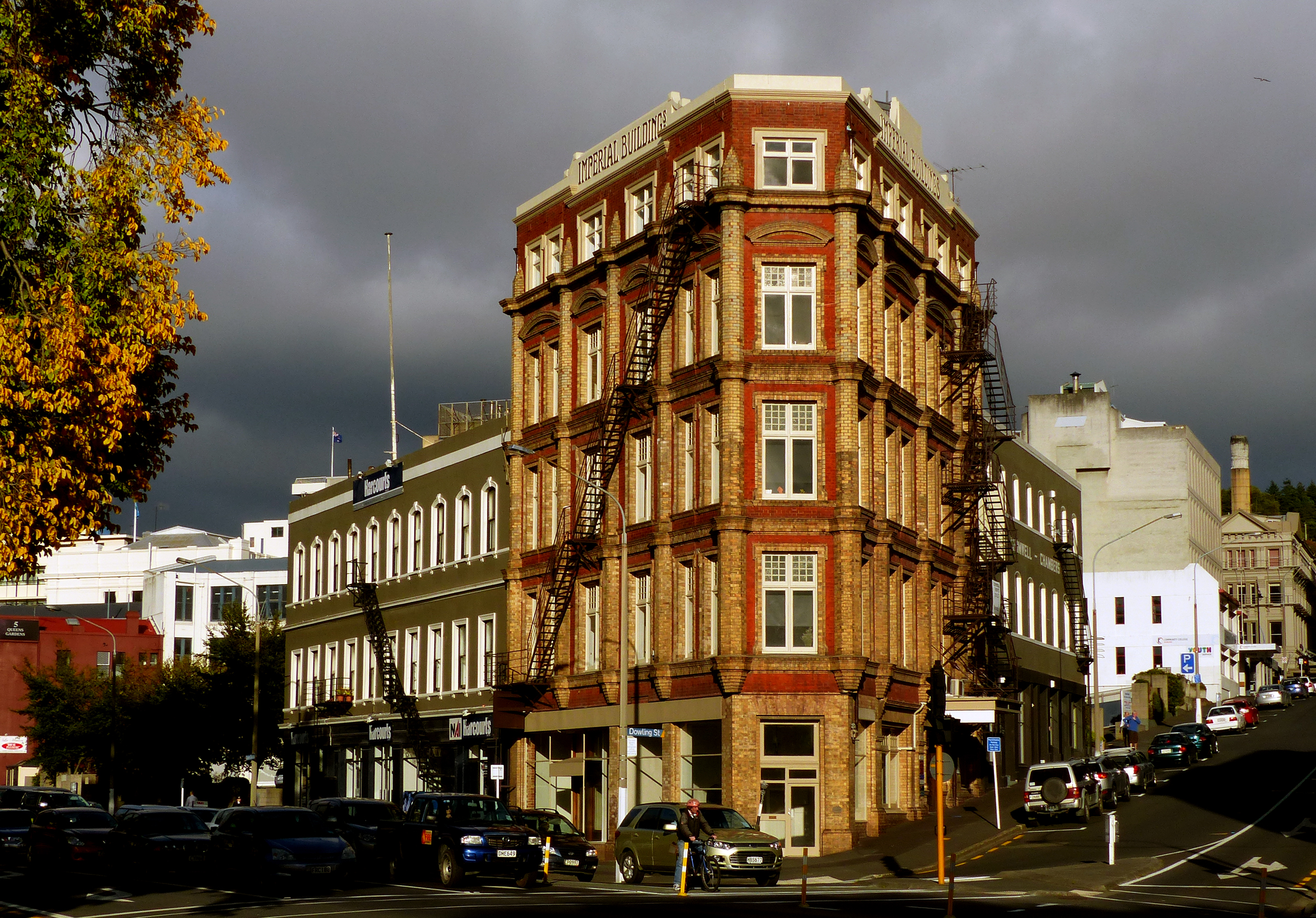 Description: Imperial Building, corner Dowling and Lower High Street, Dunedin, New Zealand. The building has a Category II listing with the New Zealand Historic Places Trust,