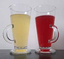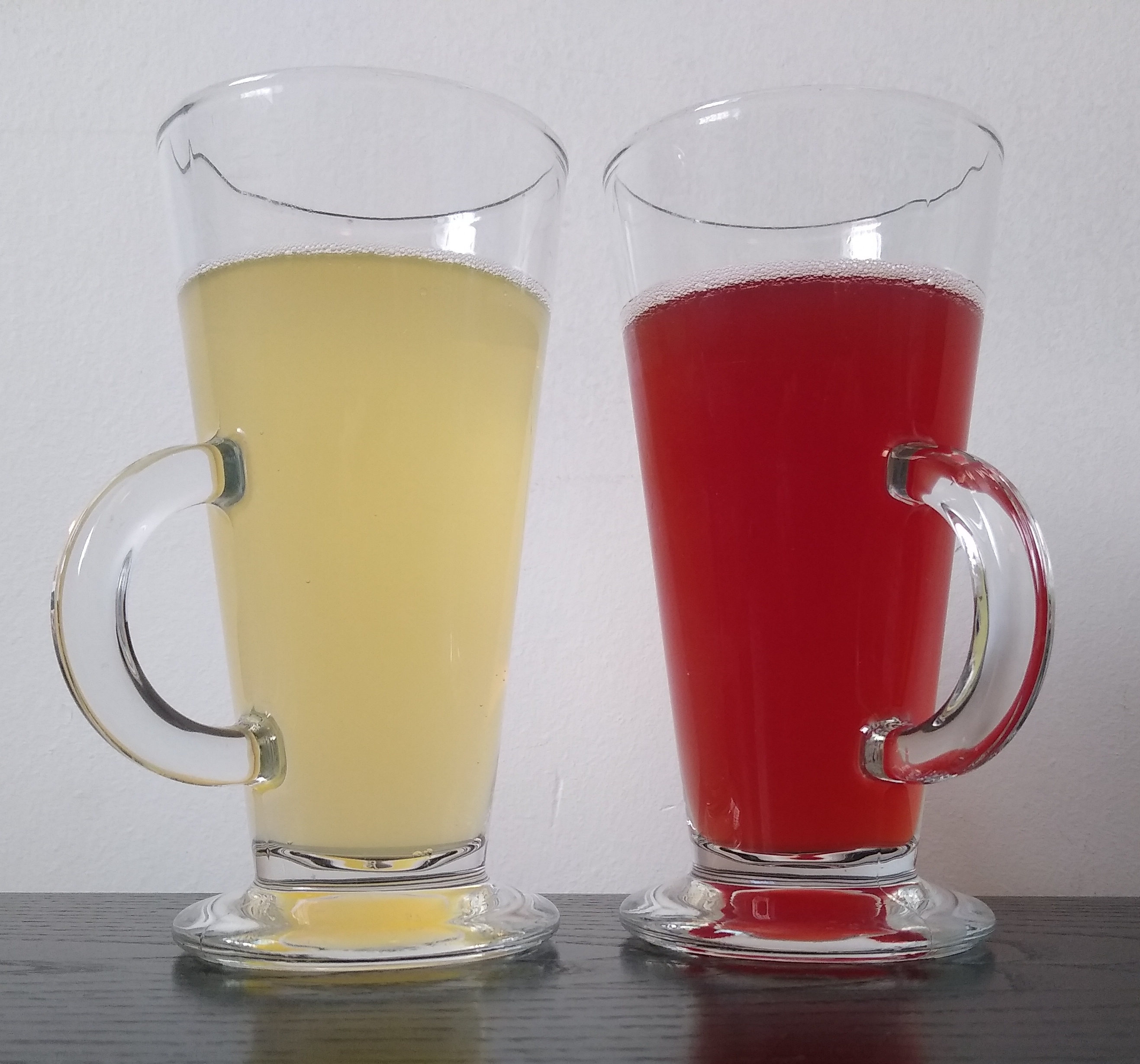 Description: Two Innocent Bubbles drinks: sparkling lemon & lime (left) and sparkling apple & berry (right). Made by Innocent Drinks.