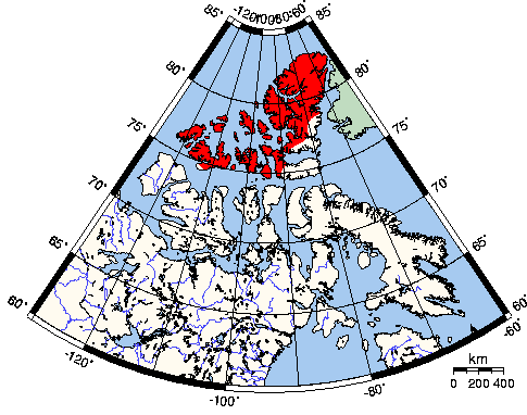 Description: This map shows, in red, the areas in the Canadian Arctic Archipelago considered to be parts of the Innuitian Region.