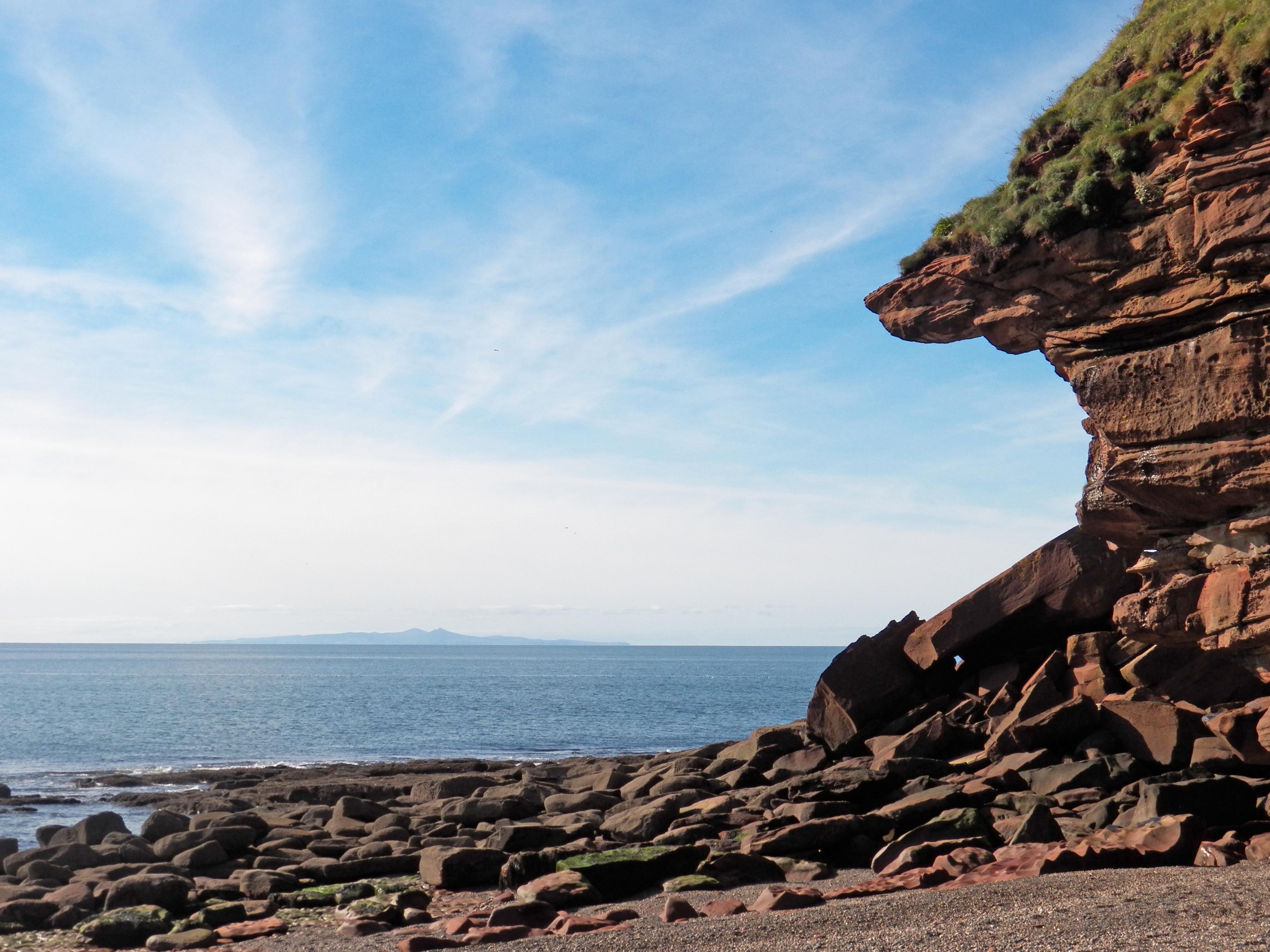 Description: The isle of Man seen from Fleswick bay, St Bees, Cumbria, UK