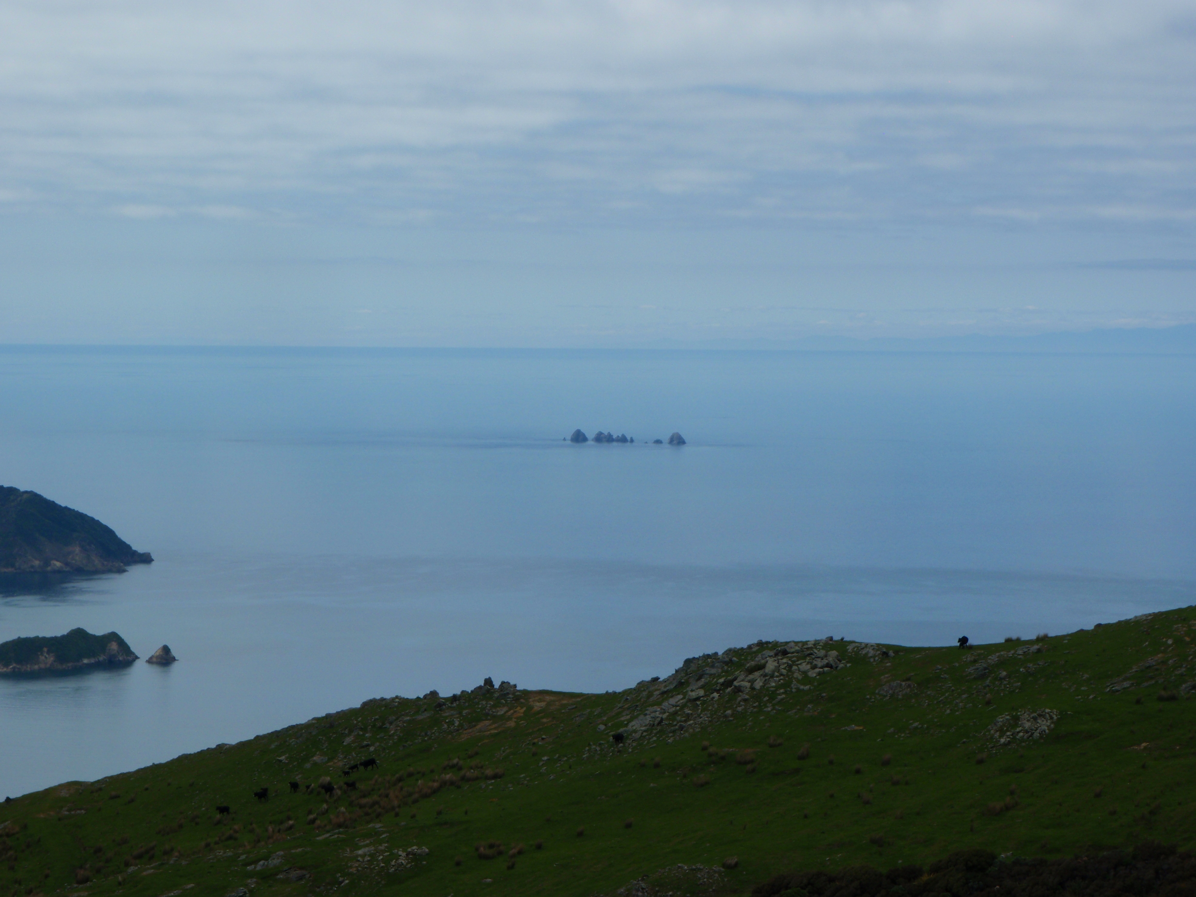 Description: Jag Rocks (Nga Kiore) Central & Rangitoto Islands on the LHS - as seen from D'Urville Island ( Foreground).