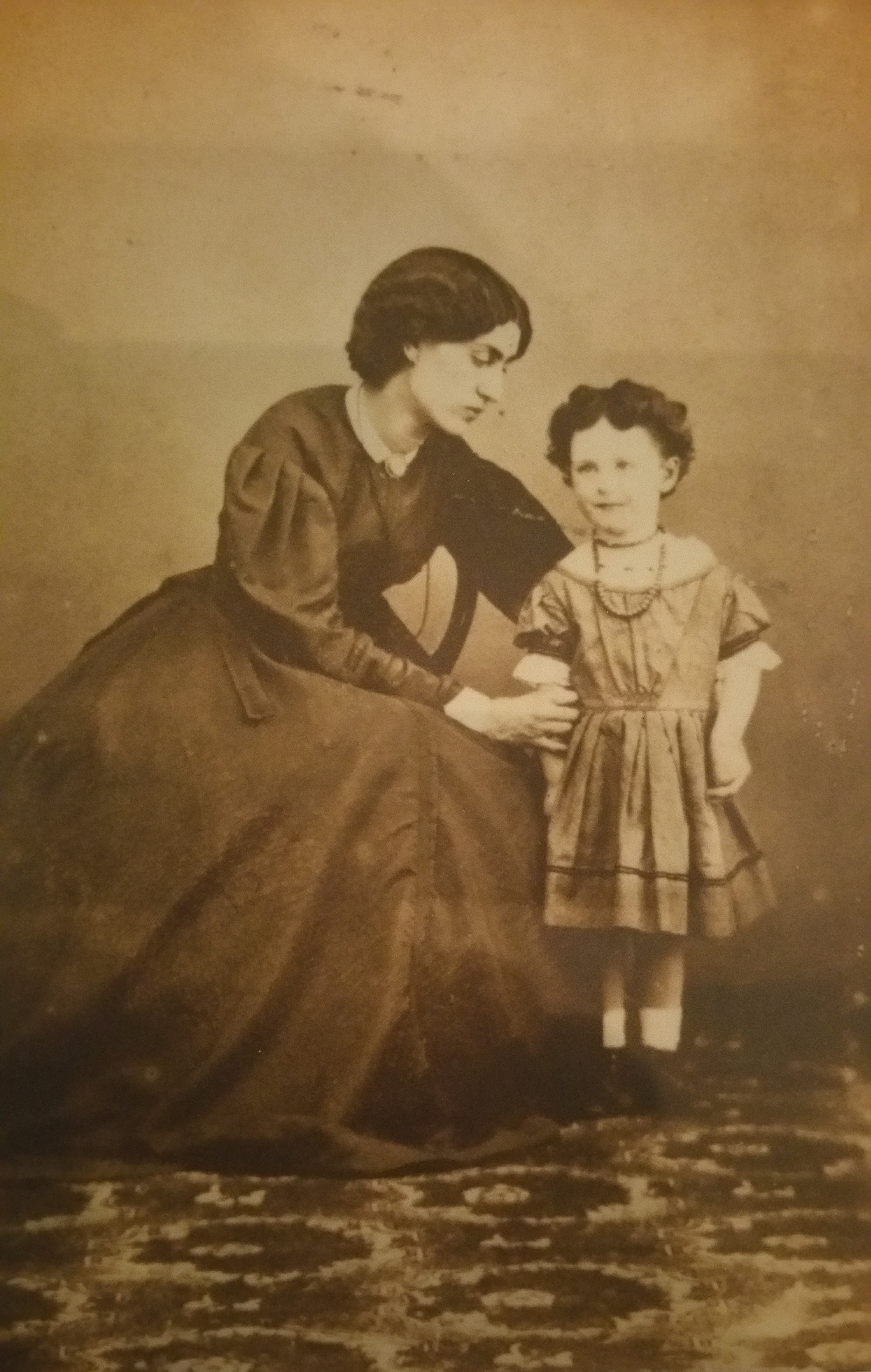Description: Jane Morris and Jenny Morris (their eldest daughter) circa 1864, photographed by H. Smith at Bexleyheath. Hangs at the William Morris Gallery, London.