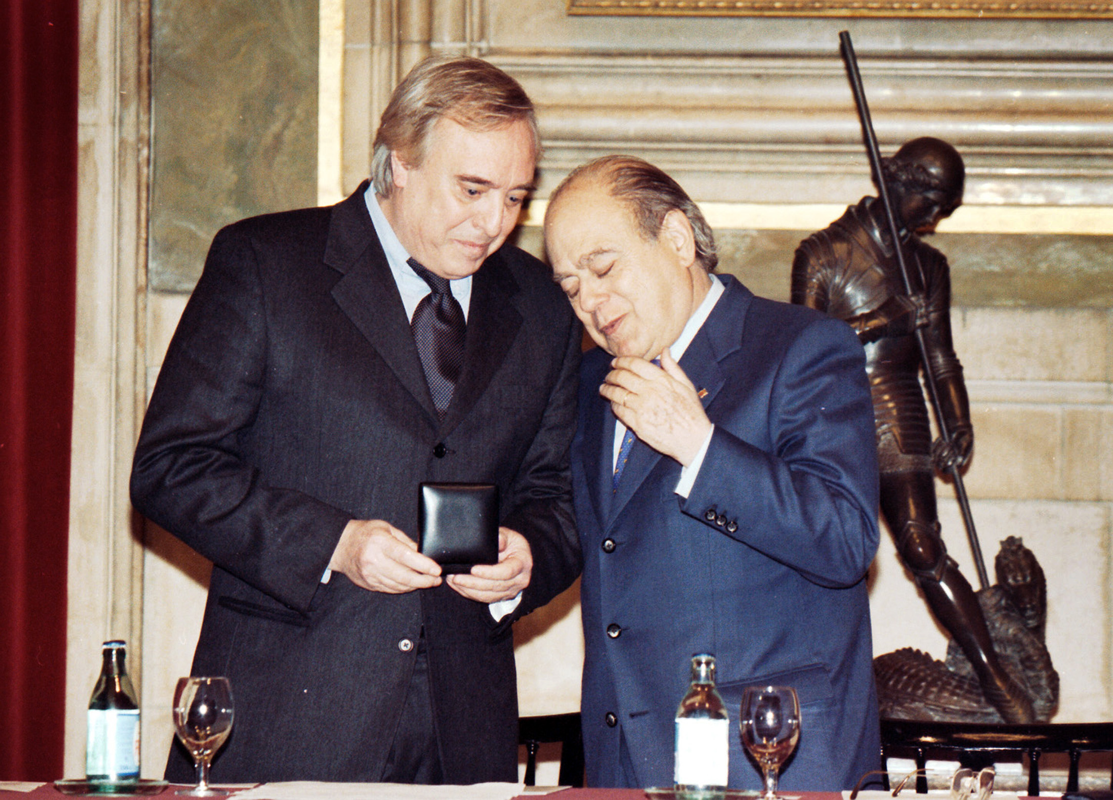 Description: Jaume Aragall receives the Gold Medal of the Generalitat de Catalunya from President Pujol