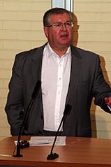 Description: Photograph of Joe Duffy, RTÉ presenter. The photograph was taken on 28 September 2011 in University College Dublin at the UCD Law Society's presidential debate.