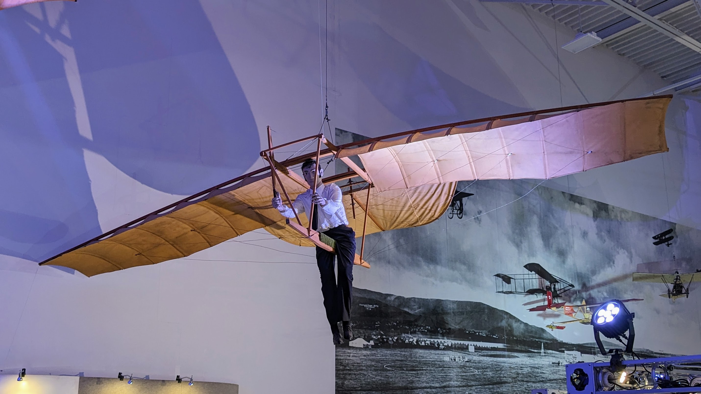 Description: John Montgomery 1883 Gull glider replica as seen in the Hiller Aviation Museum