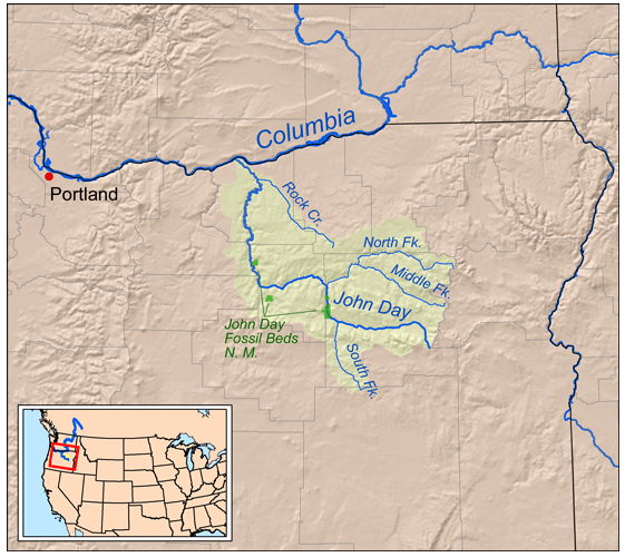 Description: Map of the John Day River watershed.
