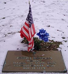 Description: Government marker for Joseph Bowman, Old Cathedral Cemetery, Vincennes, Indiana