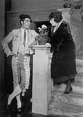 Description: promotional image of screen writer June Mathis on the set of Blood and Sand with star Rudolph Valentino