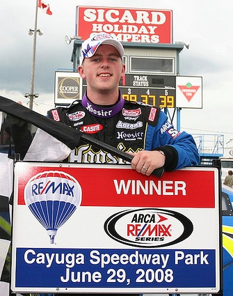 Description: Justin Allgaier in Victory Lane at Cayuga International Speedway after winning the ARCA Re/MAX Series Cayuga ARCA Re/Max 250, June 29, 2008
