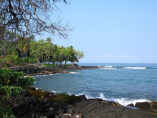Description: Kamoa Point in Kona, on the Big island of Hawaiʻi.. This was once the site of a large royal complex, and is still a popular surfing spot.