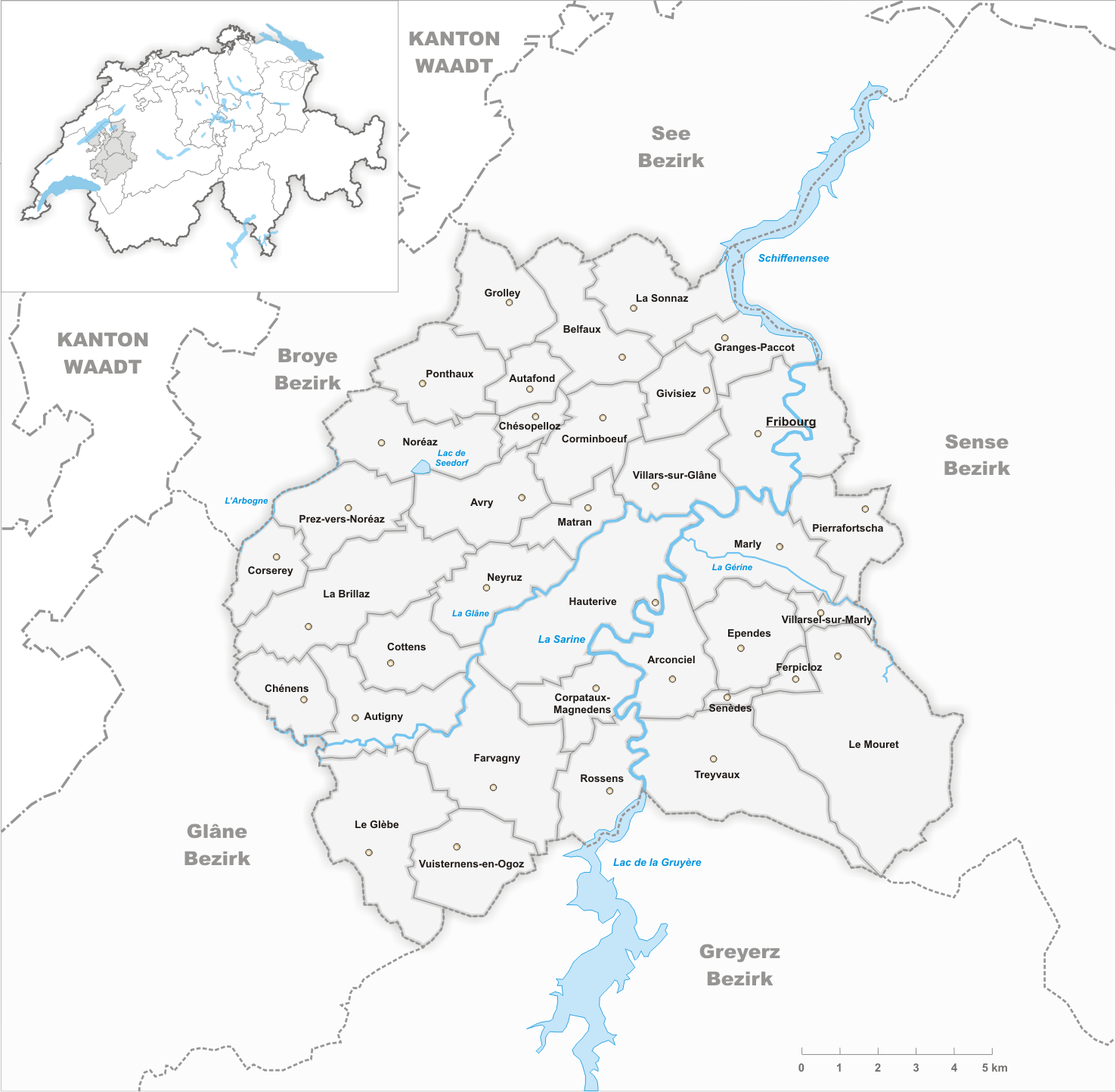 Image: Karte Gemeinden des Bezirks Saane 2007