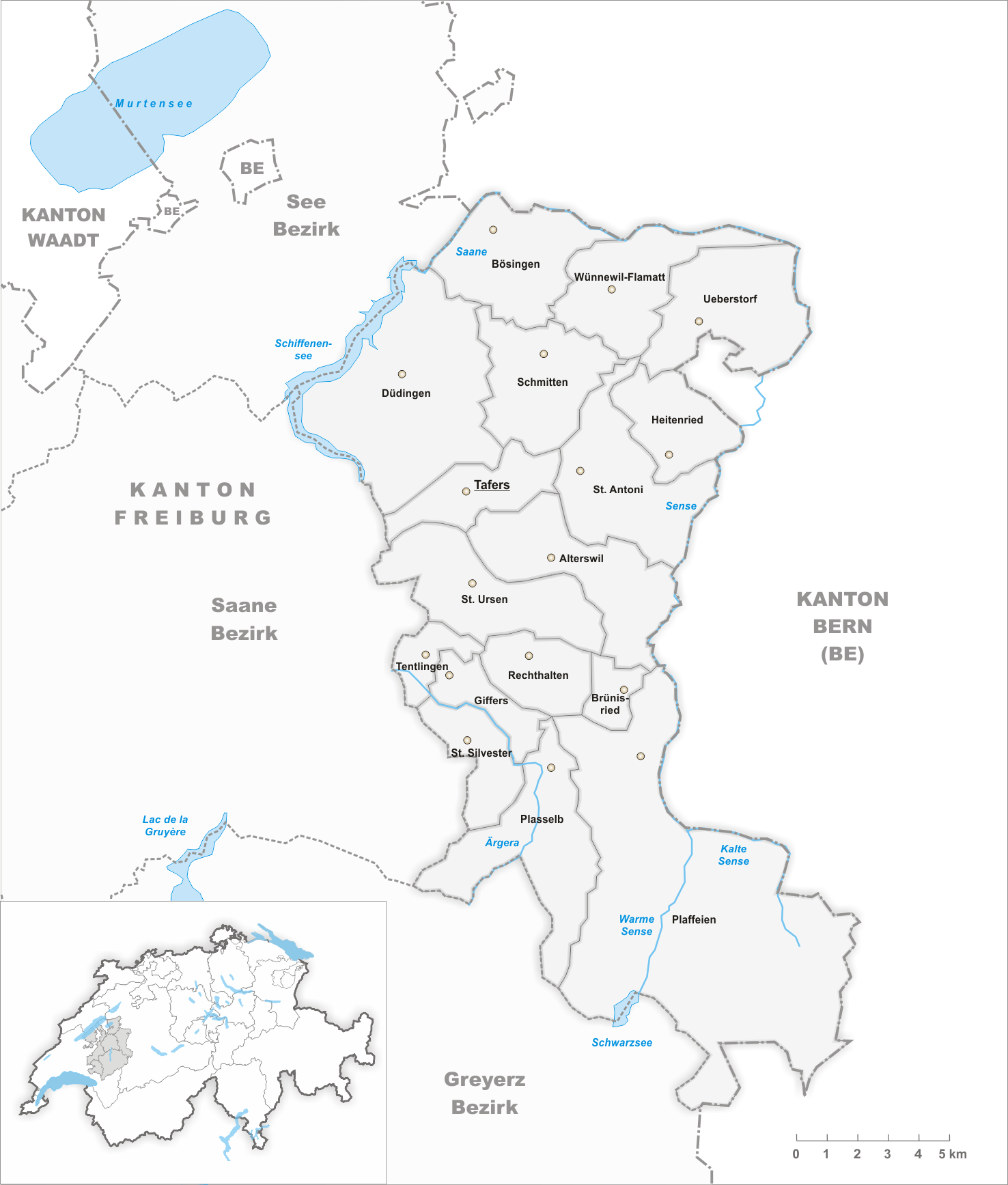 Title: Karte Gemeinden des Bezirks Sense 2017