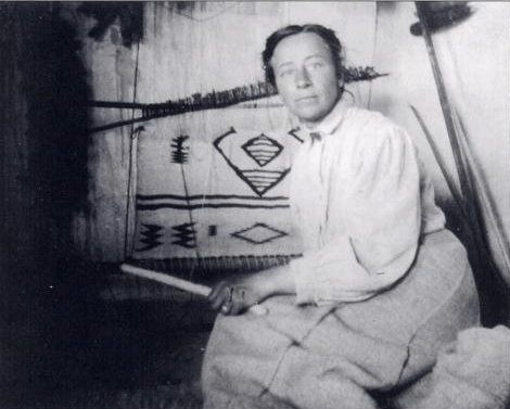 Description: Kate Cory in front of her loom, unknown photographer, circa 1905-1912, Sharlot Hall Museum, Prescott, Arizona