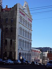 Description: Stafford St Dunedin June 2010. The Kempthorne Prosser labs at far left, then KP warehouse and then chief offices.