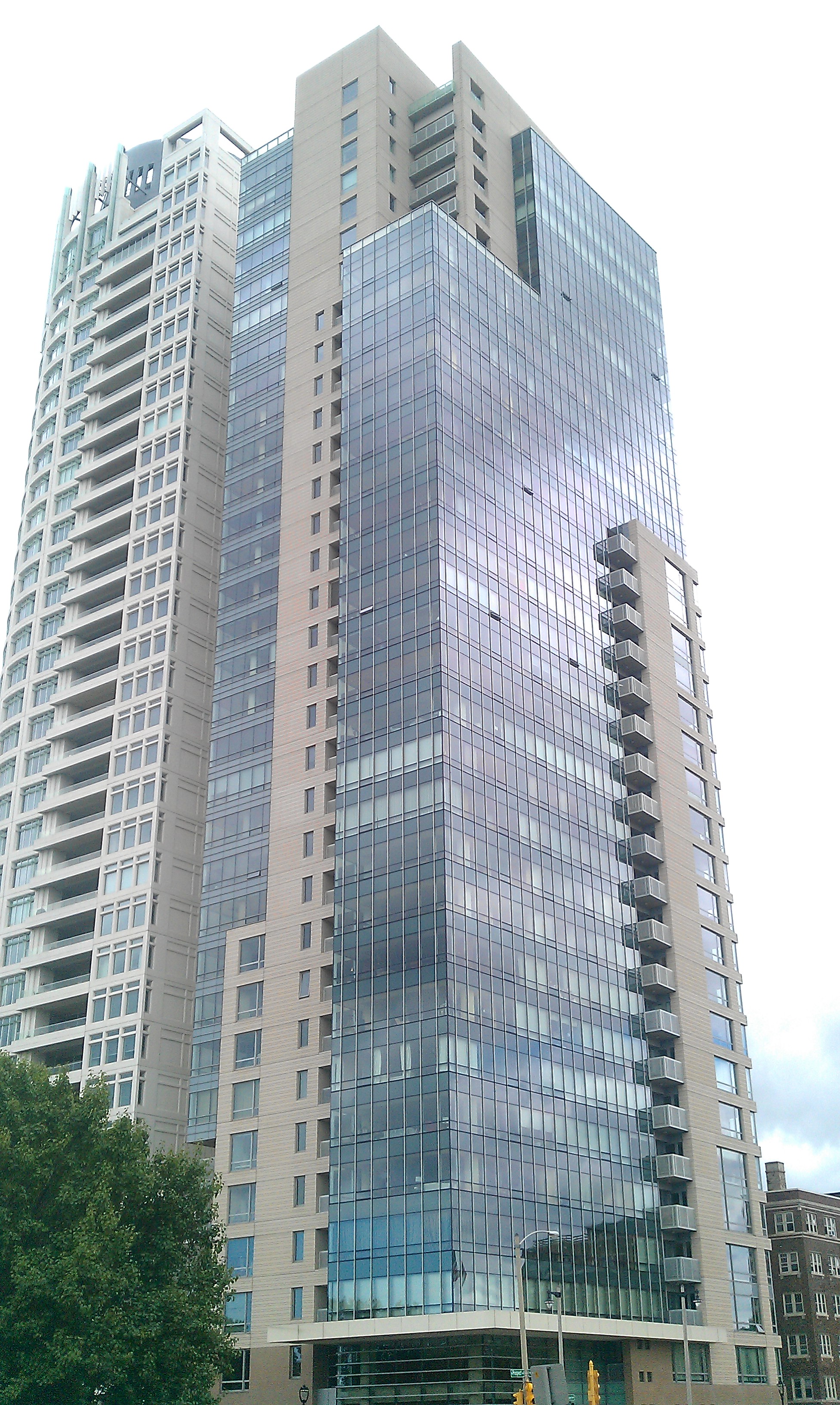 Description: The 33 story Kilbourn Tower from the northeast on a cloudy day