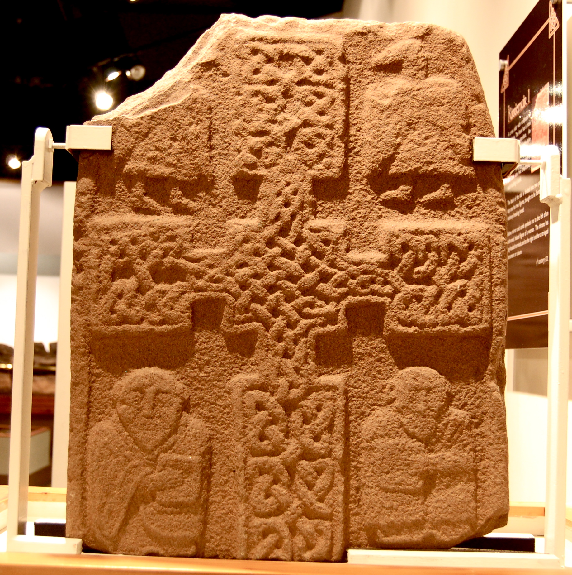 Description: Front of Kirriemuir 1 stone: Class II Pictish stone, on display at Meffan institute