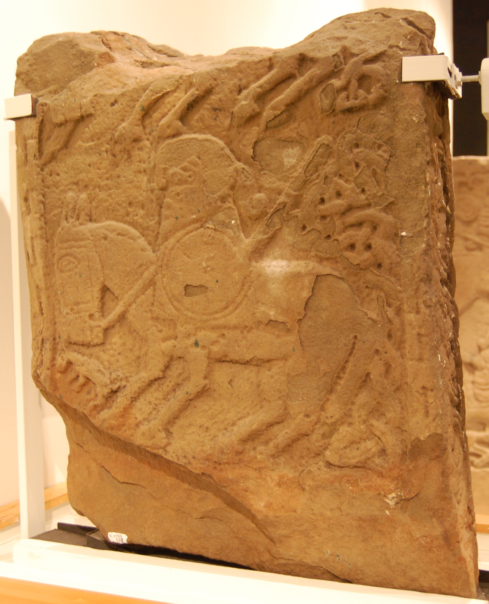 Description: Kirriemuir 3 rear. Class III Pictish stone. On display at Meffan institute, Forfar