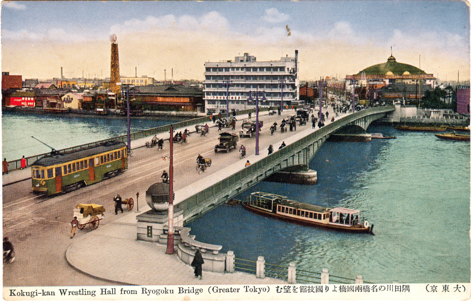 Title: Kokugikan-Wrestling-Hall-Ryogoku-Bridge-Tokyo-1935