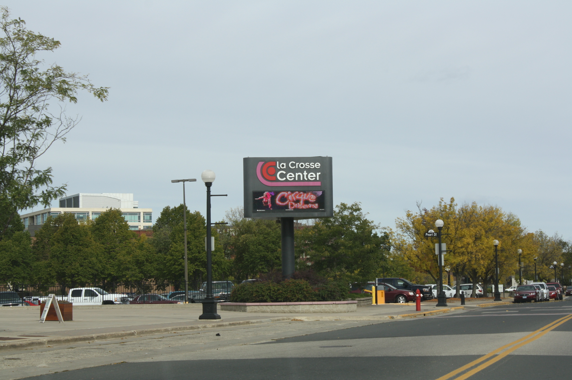 Description: The sign for the w:La Crosse Center in w:La Crosse, Wisconsin.