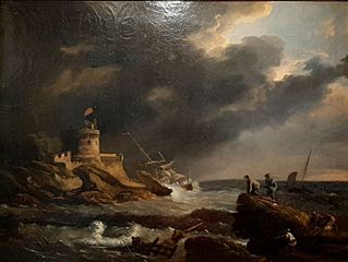 Description: GENARO PÉREZ VILLAAMIL (Ferrol, 1807 – Madrid, 1854). “La tempestad”. Óleo sobre lienzo. 48,5 x 64,5 cm. Colección particular.