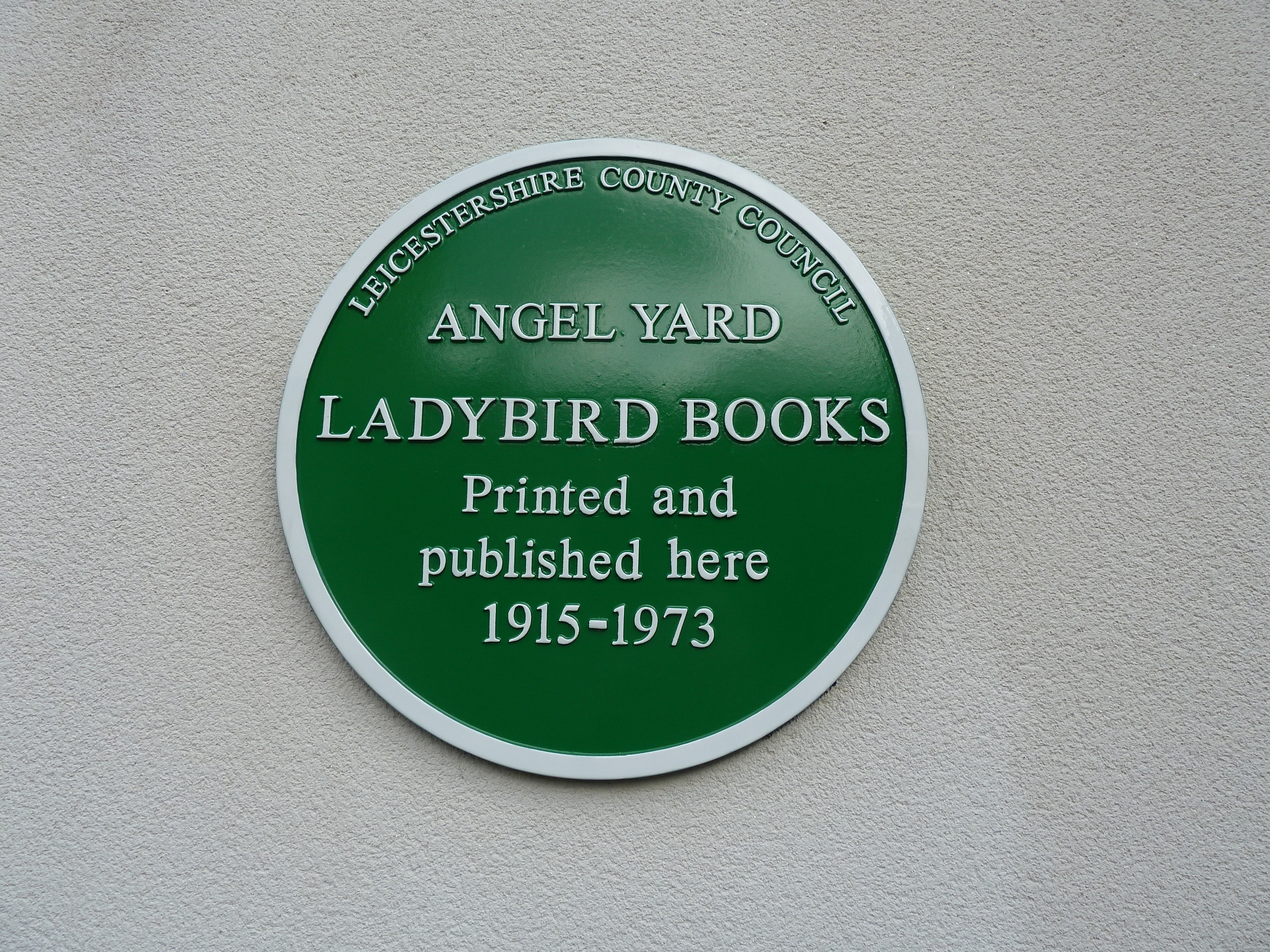 Image: Ladybird Books green plaque, Angel Yard, Loughborough 01