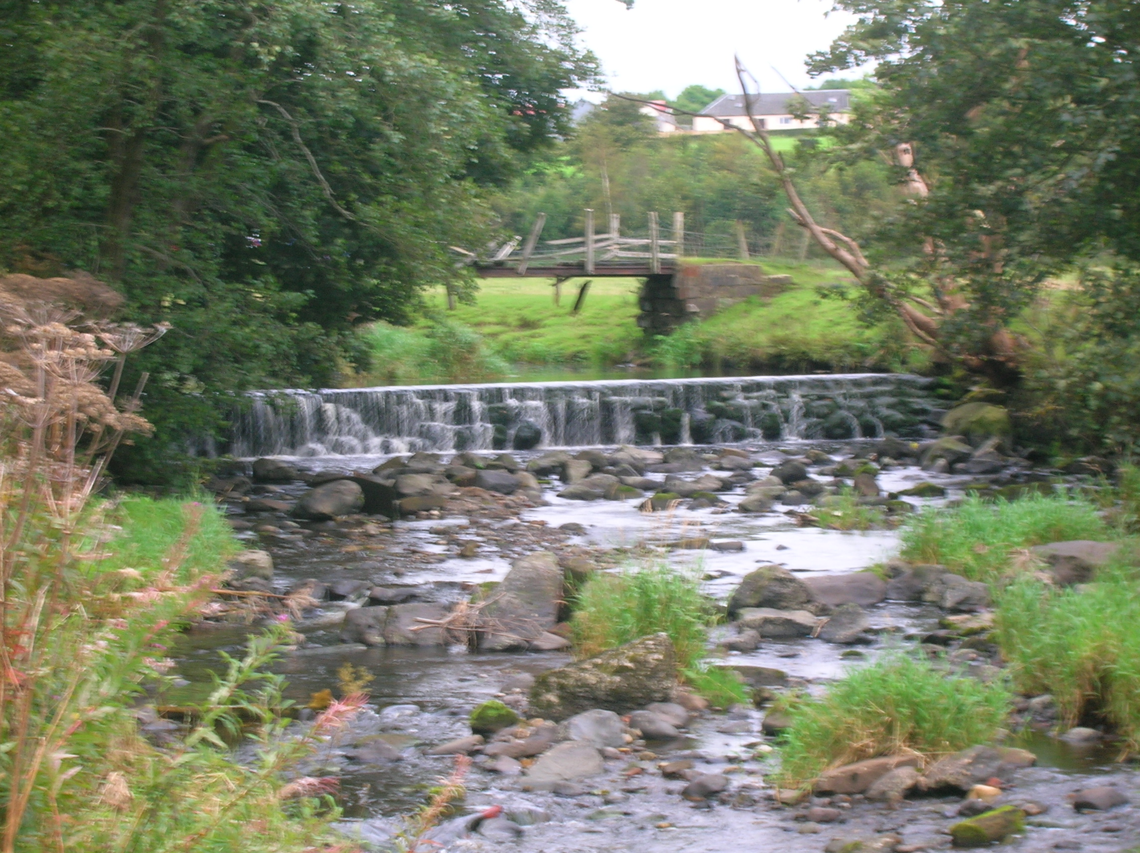 Description: The weir and old bridge on the Annick Water near Lainshaw House. 2007. Stewarton. East Ayrshire. Scotland.