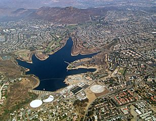 Description: Lake Murray reservoir, aerial view looking north to Cowles mountain.