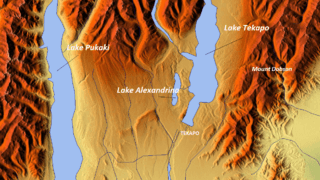Description: Relief map showing Lake Alexandrina, New Zealand