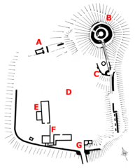 Description: Launceston Castle - plan, after Jones, updated post investigations