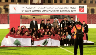 Description: Lebanon women's national football team during the 2019 WAFF Women's Championship third place award ceremony.