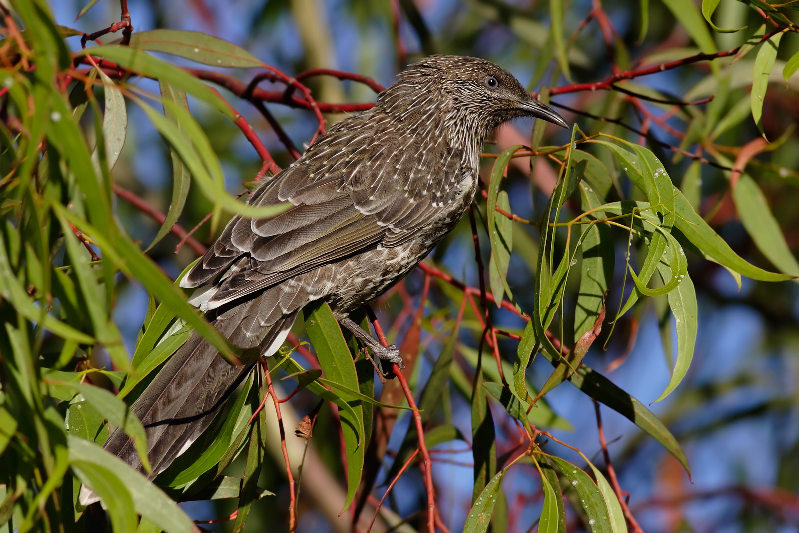 Description: Little wattlebird on a eucalyptus tree in Victoria, Australia