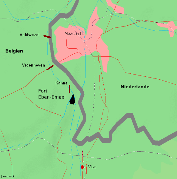 Description: location of fort Eben-Emael and pridges derived from 594px-Eben-Emael.PNG