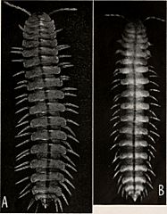 Description: A. Adult Motyxia sequoiae. B. An adult M. sequoiae photographed in its own light. Animal curarized. Approx. X 3.