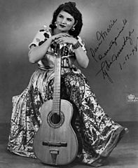 Credit: Portrait of singer Lydia Mendoza, photograph, Date Unknown; (https://texashistory.unt.edu/ark:/67531/metapth34770/m1/1/: accessed April 3, 2018), University of North Texas Libraries, The Portal to Texas History, texashistory.unt.edu; crediting Rose Marine Theatre. Per source, Copyright and Licensing Status "At this time, no copyright or licensing has been determined. You are welcome to make fair use of this image under U.S. Copyright law and in compliance with our terms of use."