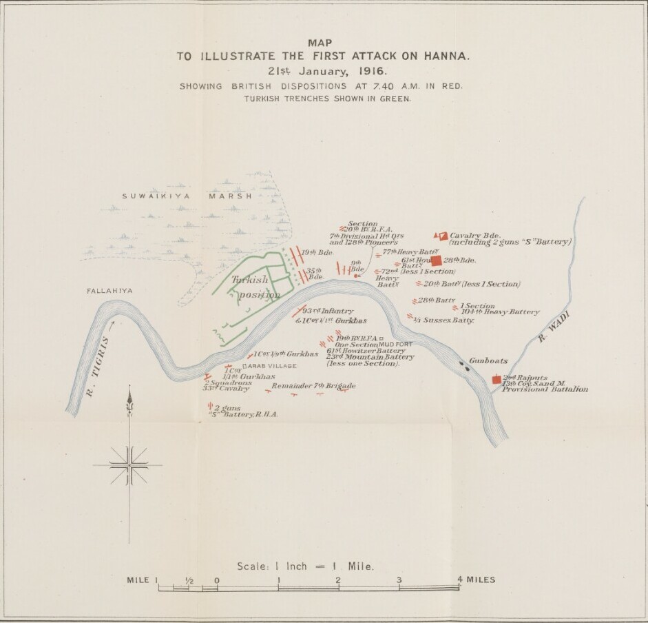 Title: MAP TO ILLUSTRATE THE FIRST ATTACK ON HANNA. 21st. January, 1916