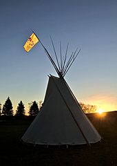 Description: Sunrise Tipi with Mackinac Bands flag