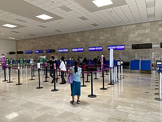 Description: Mostradores de documentación del aeropuerto internacional de Oaxaca.