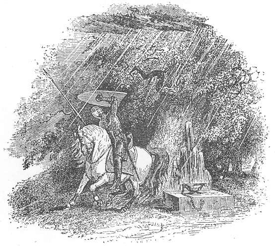 Image: Mabinogion - Owain or Cynon shelter from a hailstorm