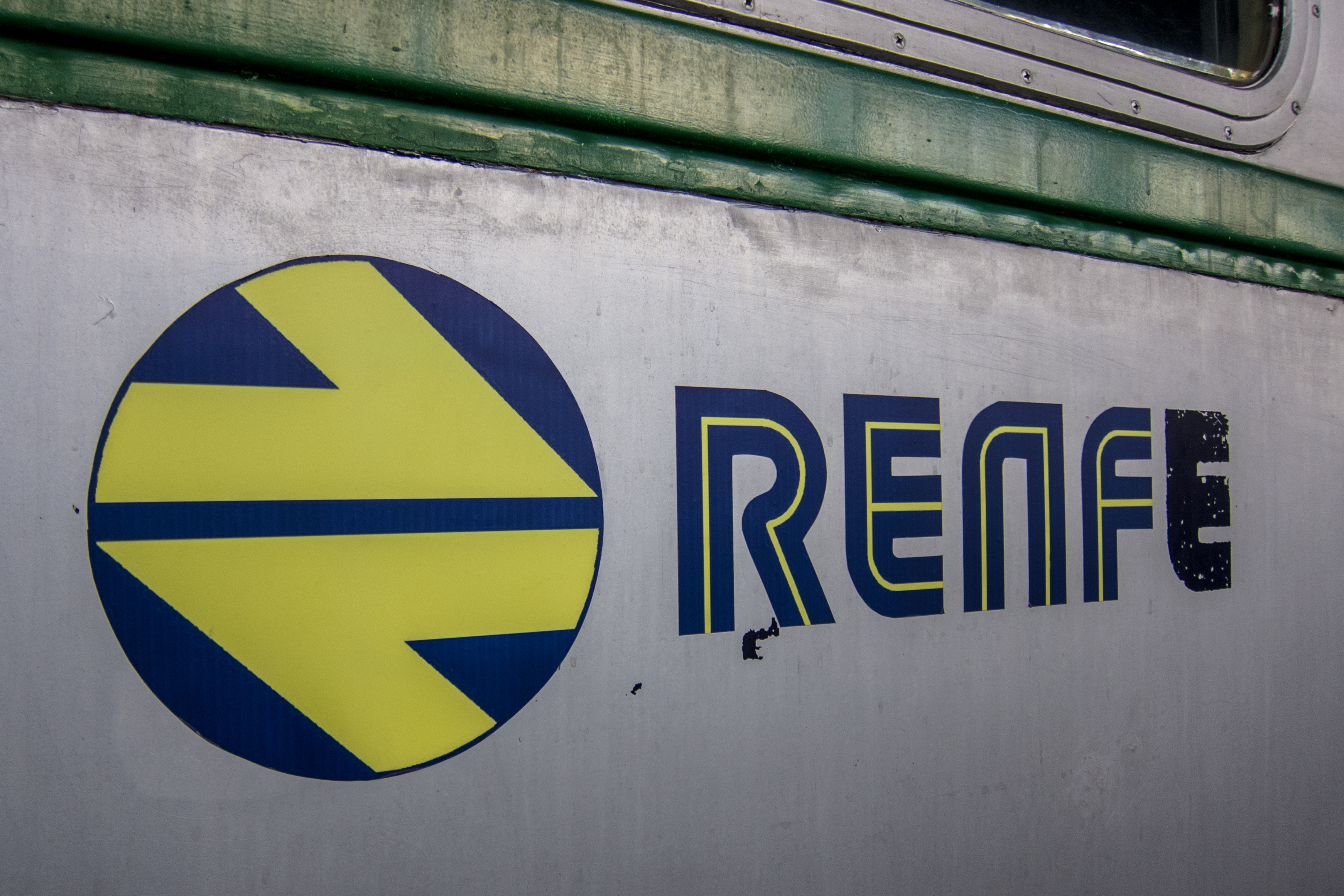 Description: Logo de RENFE en el tren automotor TAF 9522 (Fiat, Italia, 1952) Expuesto en el Museo del Ferrocarril, Madrid.