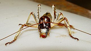 Description: Endemic New Zealand tree wētā. A kind of cricket: Orthoptera, Ensifera, Anostostomatidae